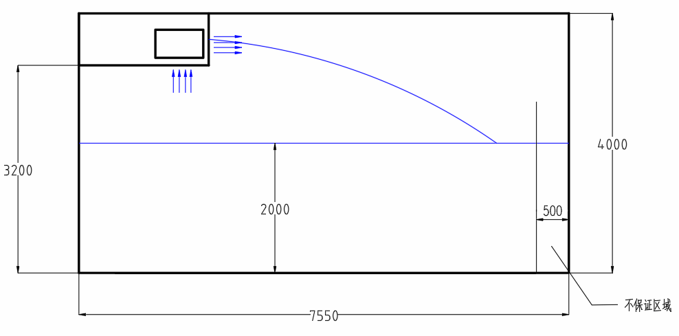 以六层北面办公室为例,该办公室面积20.5m2,净高4.0m,风机盘管410m3/h,回风量为328m3/h,选用2个方形散流器,布置在房间两端,送风温差∆t0=8℃。该方形散流器承担3.8m×2.7m的送风区域,安装高度为3.2m。