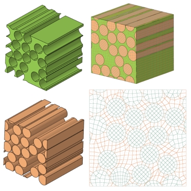 为了满足周期性边界条件,需划分周期性网格,使用hypermesh软件分别对基体、纤维、以及内表面进行网格划分,并使用复制对称面网格的方式,确保网格的周期性,效果如图所示。