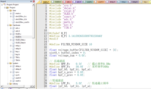 然后我将这些系数移植到keil中并进行相应的IIR滤波处理,具体代码由于篇幅限制不再展示,最终经过滤波处理后的电压波形图如下: