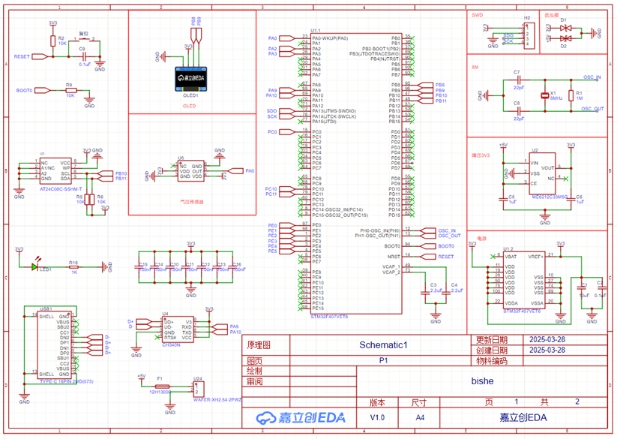 根据上面的硬件选型,在嘉立创EDA软件中设计血压脉搏计电路图如下: