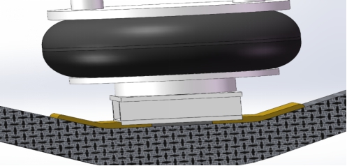 (4)完成套架与柔性体侧梁的连接的创新设计(压块与防纵向窜动辅助嵌板的设计)