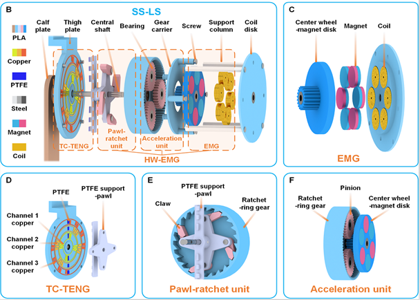 图3. 自供能和自感应的下肢智能保健系统(SS-LS)结构