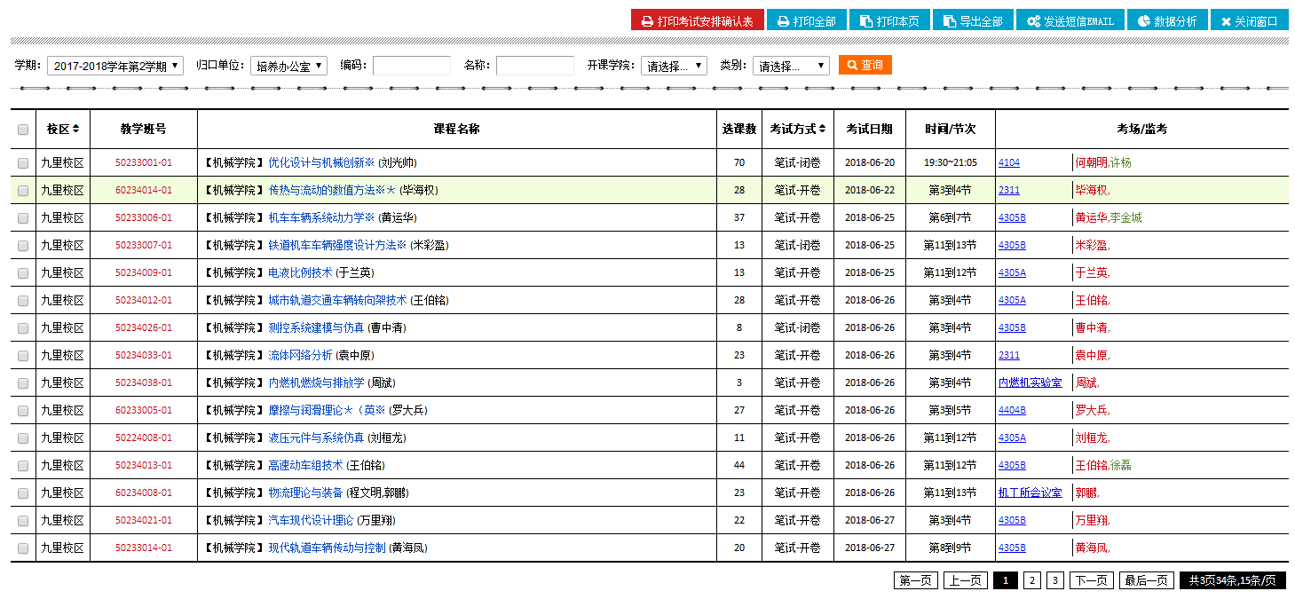2017-2018第二学期环球体育(中国)科技有限公司官网研究生专业课期末考试安排