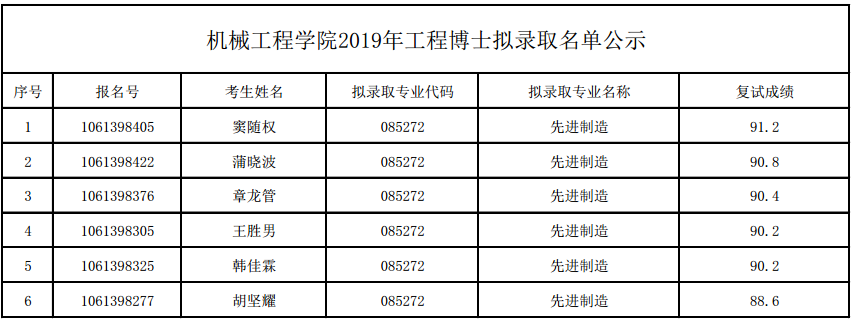 环球体育(中国)科技有限公司官网2019年工程博士拟录取名单公示