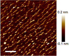 Right figure: STM diagram of a-red P on Au(111) substrate (scale: 30 nm).