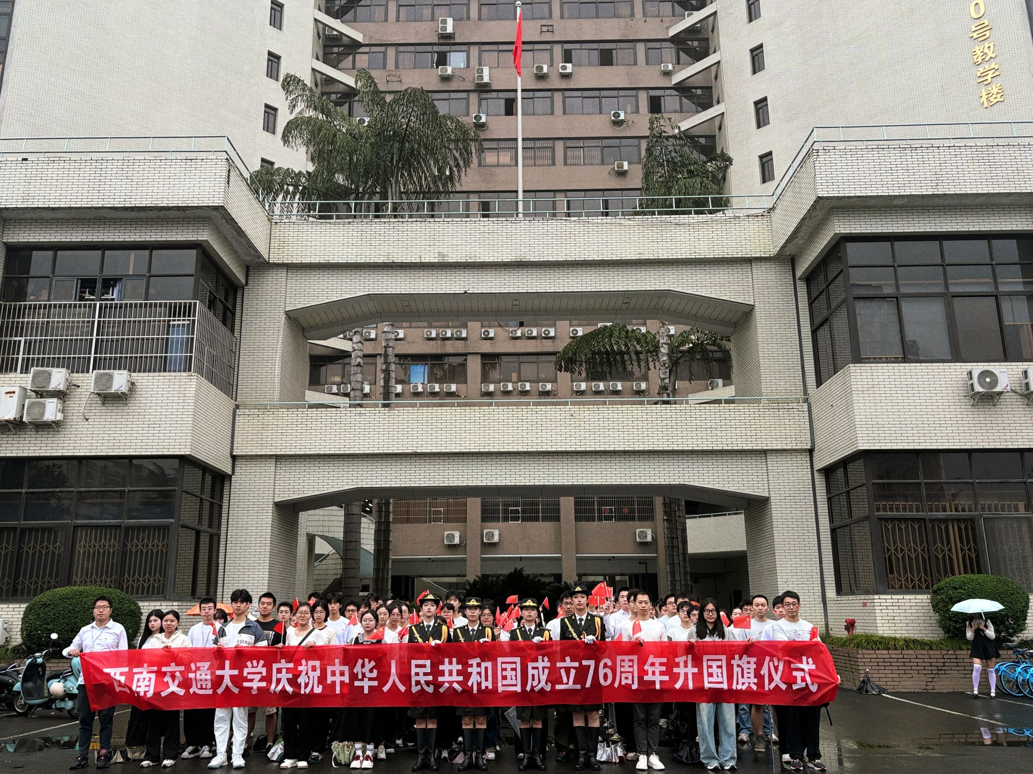 为热烈庆祝中华人民共和国成立76周年,深入学习贯彻习近平总书记在纪念中国人民抗日战争暨世界反法西斯战争胜利80周年重要讲话精神,进一步加强新时代爱国主义教育,激发广大师生的爱党爱国爱校热情,10月1日上午8:30,学校在犀浦校区东门国旗台和九里校区南门0号教学楼国旗台同步举行升国旗仪式。环球体育(中国)科技有限公司官网党委副书记沙晓雪、团委书记何蕊芯与青年教师代表到场,共同见证了这一庄严时刻。