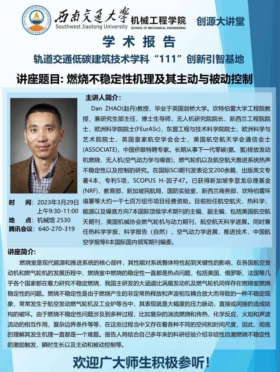 学术报告:燃烧不稳定性机理及其主动与被动控制